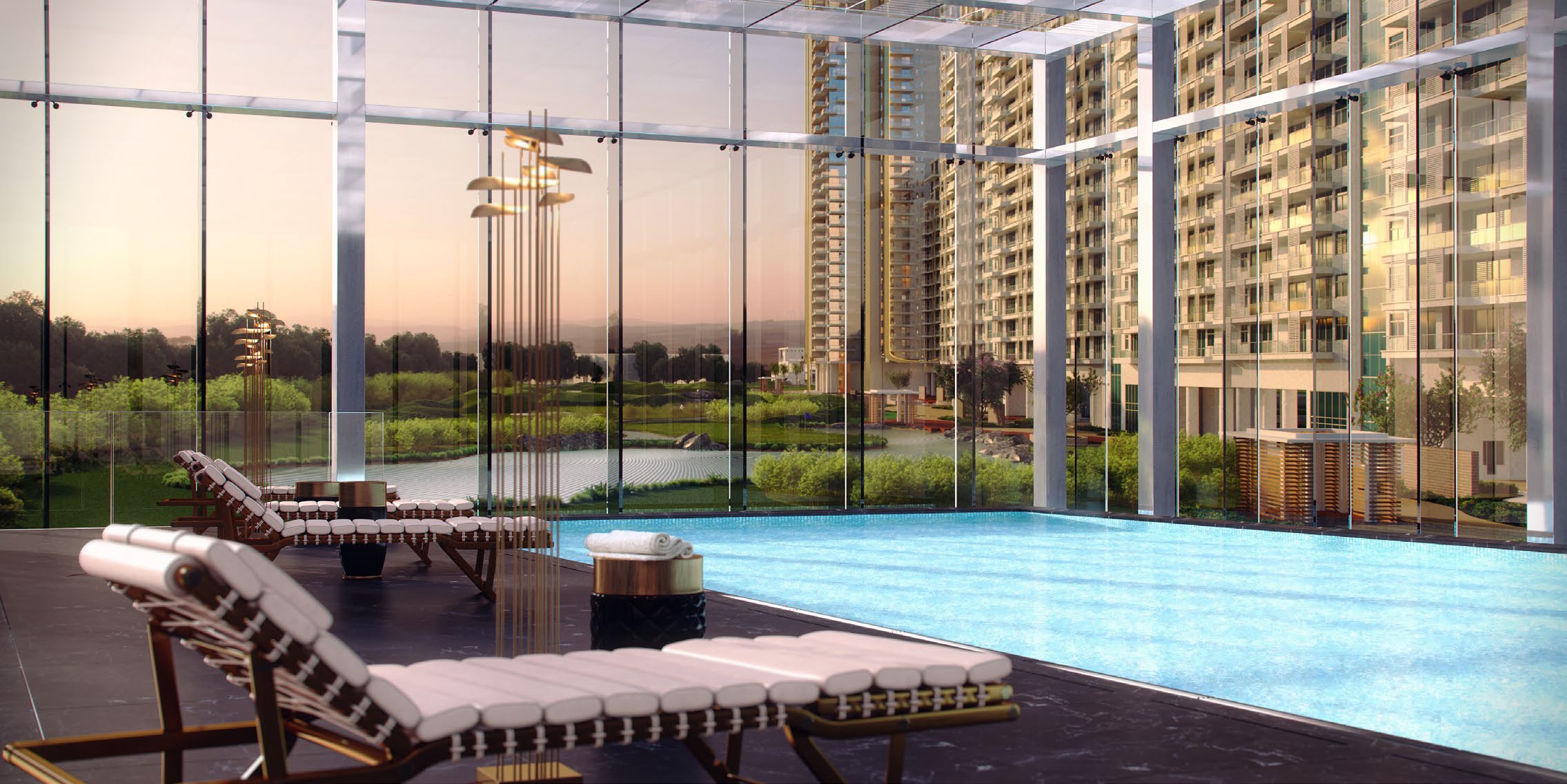 - Signature features: glass facade, high ceiling heights (22ft in living rooms for select units), ultra-premium amenities such as temperature-controlled indoor pool, spa, concierge, etc.